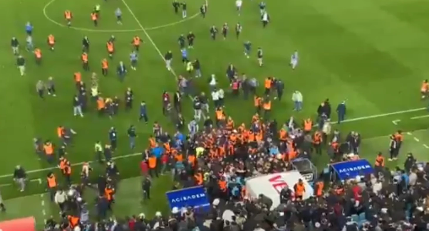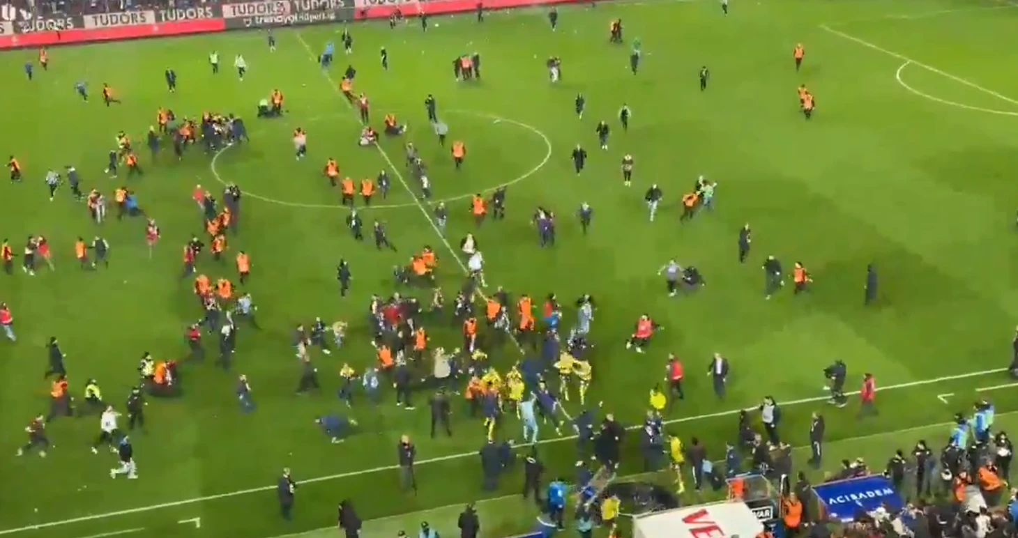 Первые выбежавшие фанаты были агрессивны и разозлили игроков «Фенера», а стюарды пытались выступить в роли миротворцев.