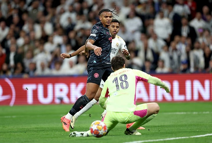 Все началось с Бернарду Силва и Андрея Лунина: полузащитник «Манчестер Сити» убедил всех, что готовит крученую подачу в штрафную, вратарь «Реала» явно поверил и забыл про ближний угол.