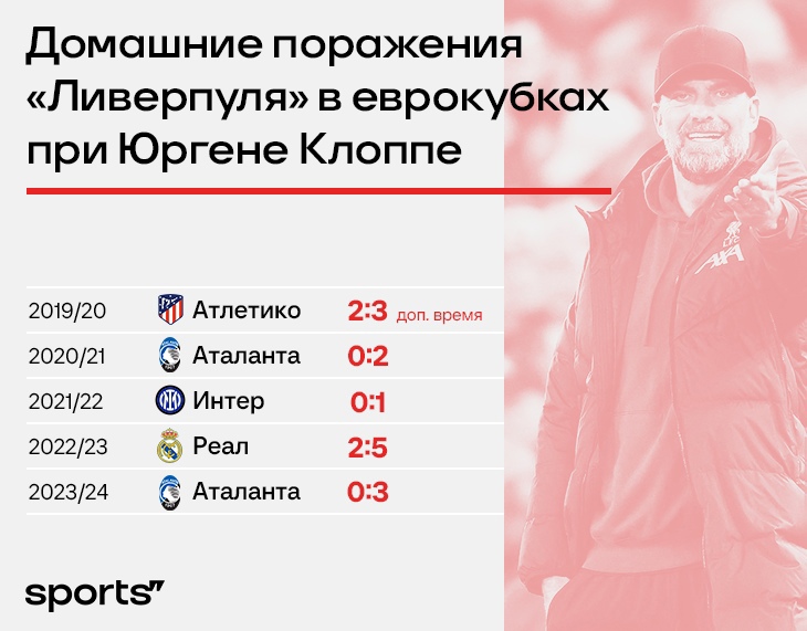 ⚫️ Да и вообще разгром «Ливерпуля» на «Энфилде» – редкое зрелище. За все время правления Клоппа это случилось лишь в третий раз. «Ман Сити» победил 4:1 в 2021 году, «Реал» в прошлом сезоне – 5:2. И теперь «Аталанта».