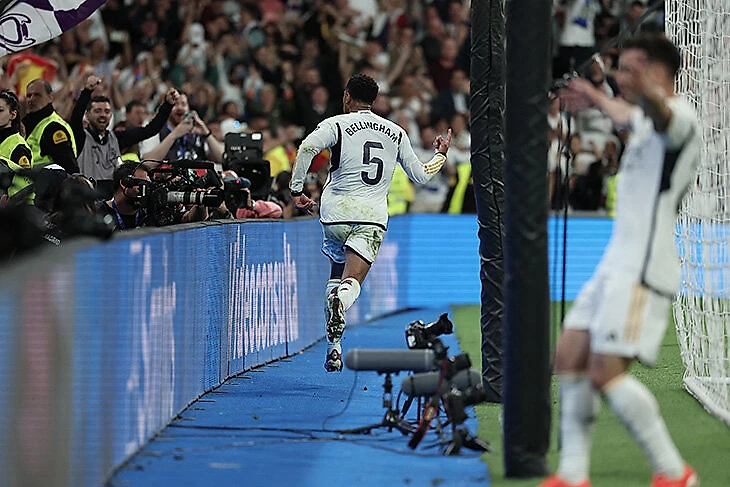 Быстрая атака «Реала», прострел Лукаса Васкеса, Джуд Беллингем на дальней штанге идеально пробил.