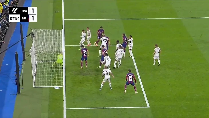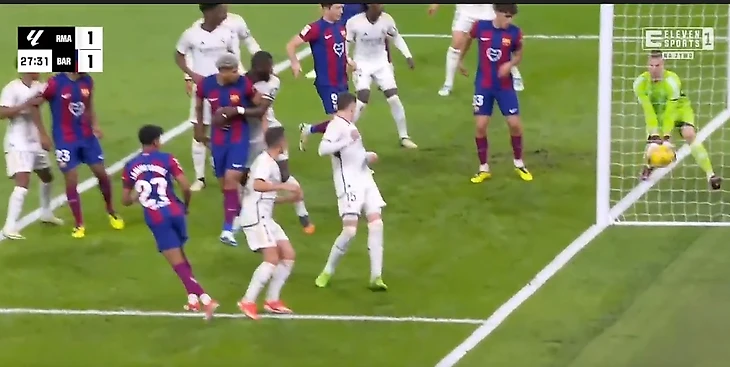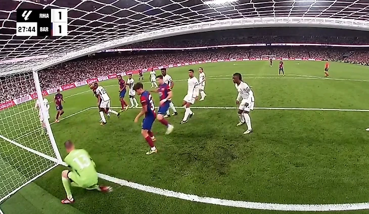 Спор возник после углового «Барсы» на 29-й минуте: Ламин Ямаль ударил, Андрей Лунин выгреб мяч с линии ворот. Возможно, прямо из них.