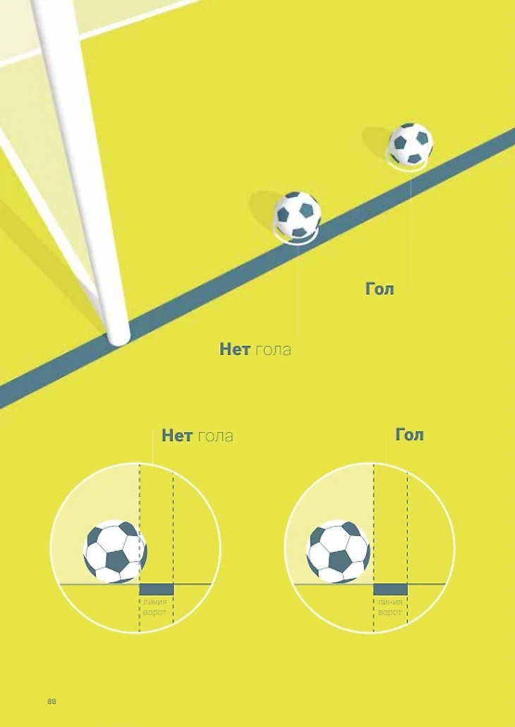 Сначала положение из официальных Правил игры: «Гол считается забитым, если мяч полностью пересек линию ворот между стойками и под перекладиной, при условии, что перед этим команда, забившая гол, не нарушила Правила игры».