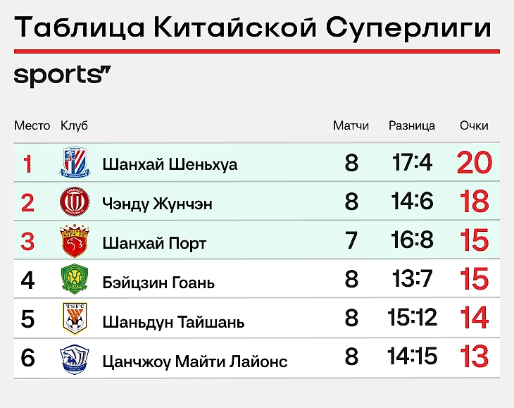 «Шанхай» Слуцкого по-прежнему лидер, «Порт» теперь третий
