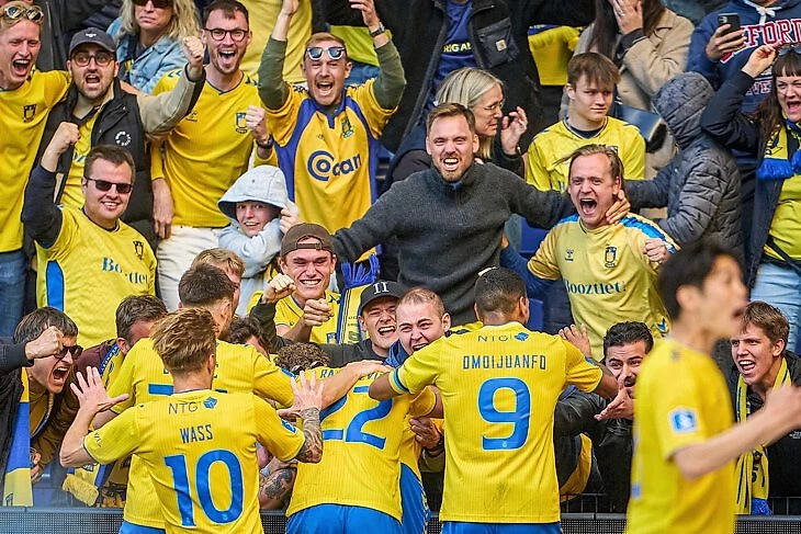 ⏱️ 64’ – лидер собирается с силами и сравнивает – 2:2. В параллельном матче «Мидтьюлланд» ведет 3:2 и пока лидирует. Положение снова такое: «Мидтьюлланд» – 65, «Брондбю» – 63.