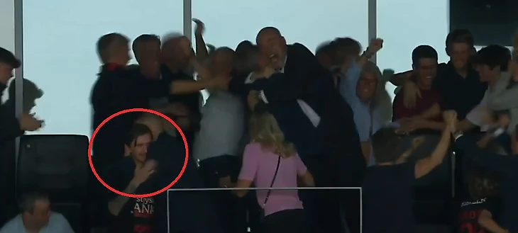 Вип-зона «Мидтьюлланда» скакала от восторга, там же за развязкой следил Кристоффер Ольссон. О нем чуть ниже.