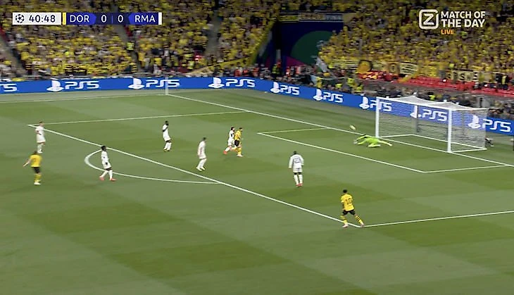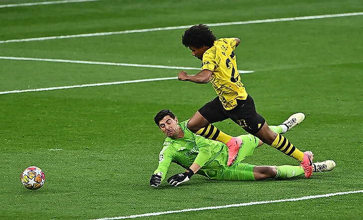 Например: дезориентировал Карима Адейеми – тот запорол выход один на один, хотя ворота были пустыми. Куртуа вовремя вышел на перехват.