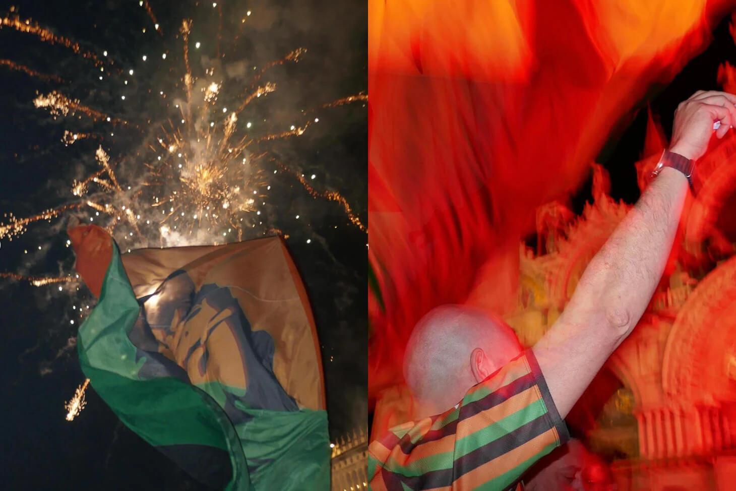 Йоэл сохраняет стиль: в шапке венецианского дожа открыл огромную бутылку шампанского.