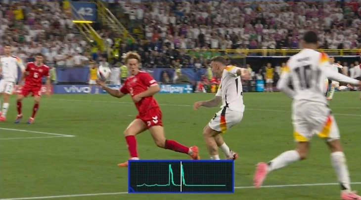 Так, стоп! Все же нет! Шоу прервали судьи: у Дилэйни зафиксировали офсайд в самом начале атаки. Датчанин залез в положение вне игры... пальцами левой ноги! Тут сработала новинка Евро-2024 – система полуавтоматического определения офсайдов.