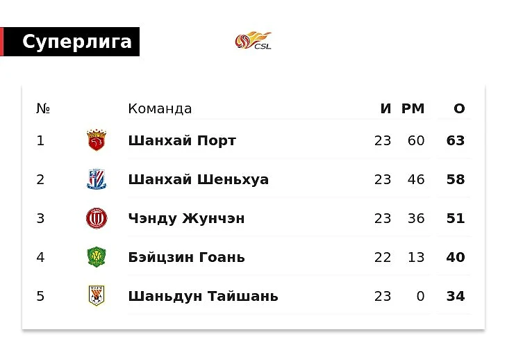 У «Шеньхуа» всего одно поражение в сезоне – и это пять очков отставания от «Шанхай Порта». Соседи выдают еще более феноменальный сезон – 0 поражений в 23 турах.