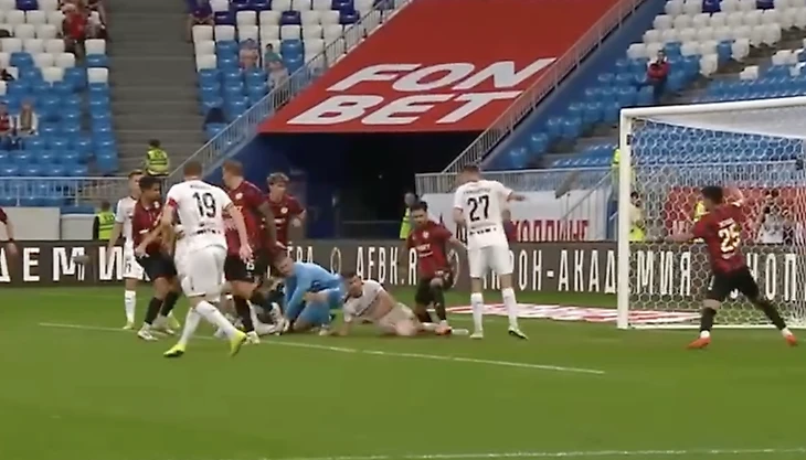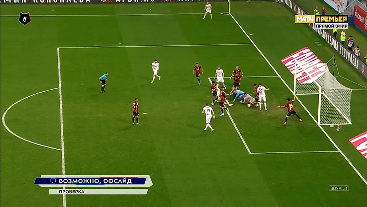 8 минут ВАР на гол «Рубина»: главный судья пошел против коллег. Но правда ли офсайд у лежащего пассивный?