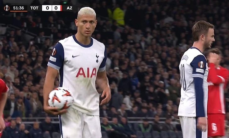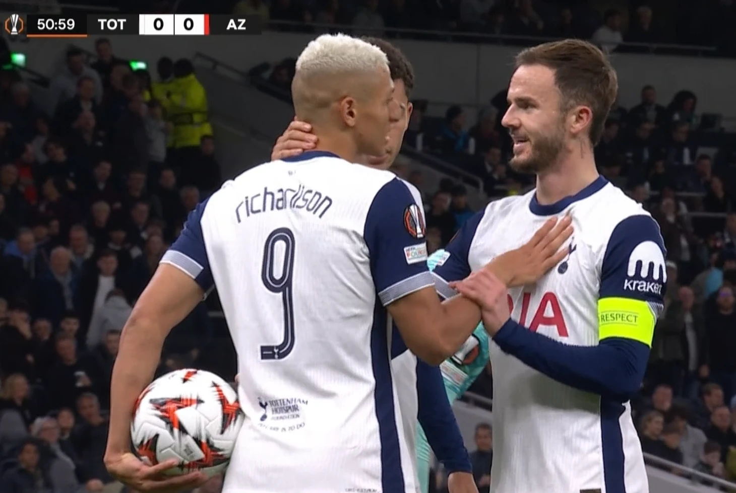 Ришарлисон ну очень хотел пробить сам – забрал мяч и отпихивал Джеймса Мэддисона, вышедшего на этот матч с капитанской повязкой.