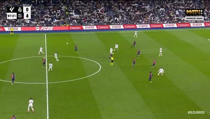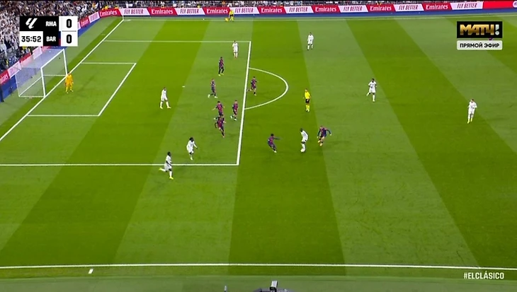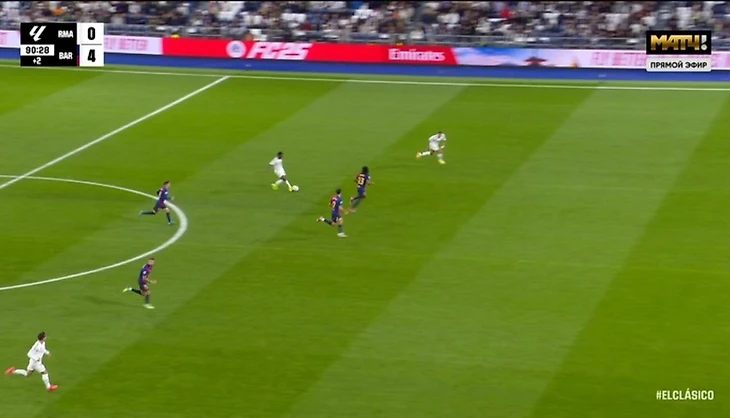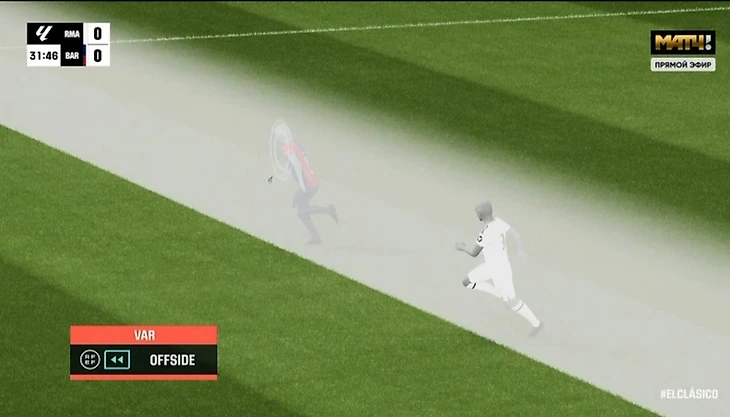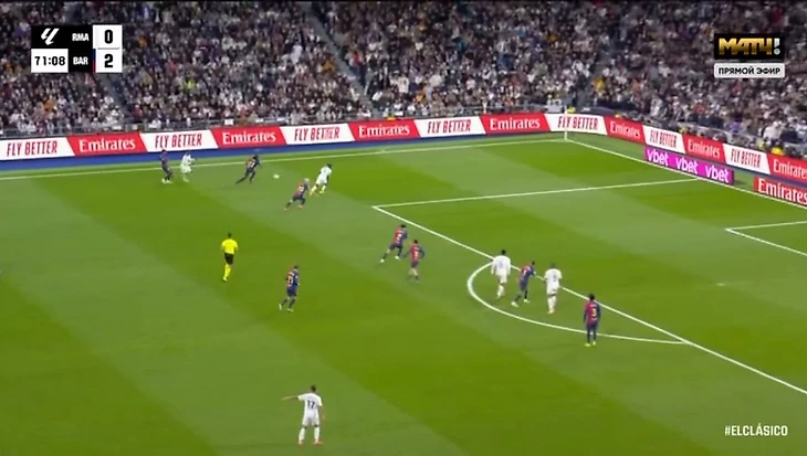 После этого «Барселона» забила еще три гола и довела дело до разгрома. А «Реал» продолжил попадать в положение «вне игры». Например, вот так – из-за этого отменили гол Мбаппе на 66-й минуте.