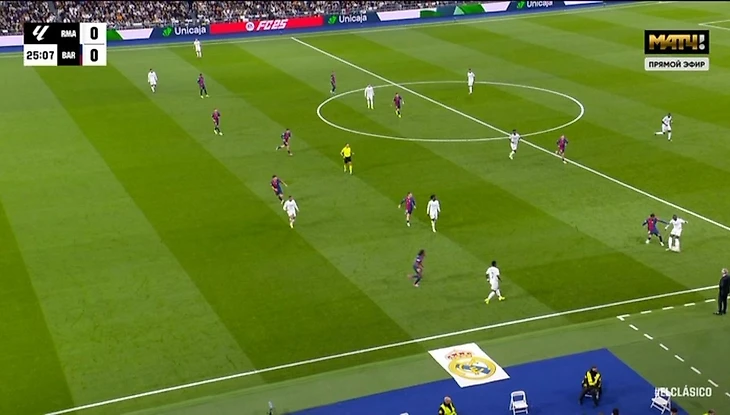 И даже так, после выносов: Рюдигер выиграл верховую борьбу в центре поля – и мяч улетел Винисиусу, который был «вне игры».