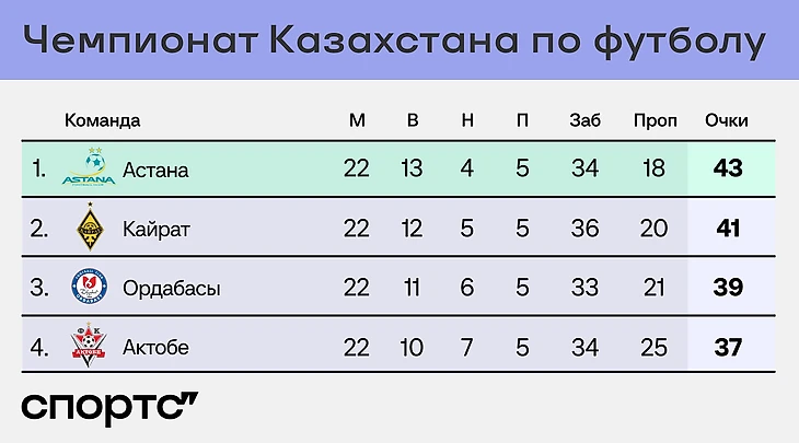 Астанчане вообще не проигрывают с июня: девять побед и ничья. Теперь опережают «Кайрат» на два очка.