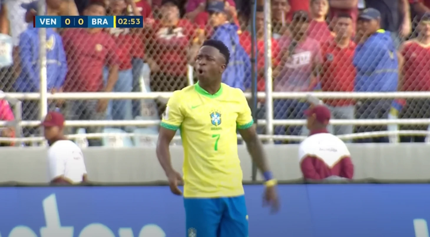 Стадион в этот момент освистал Вини, хотя ранее в кадр попал плакат венесуэльских болельщиков с надписью: «Винисиус Жуниор. «Золотой мяч». Бесспорно».