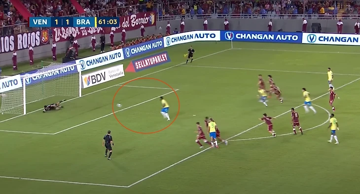 Бразильцы открыли счет в конце первого тайма: Рафинья попал прямым ударом со штрафного. Но уже на старте второго тайма венесуэльцы сравняли.