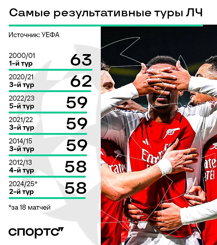 Новый формат уже ворвался в топ: во 2-м туре сезона-2024/25 забили 58 голов. Правда, только сейчас матчдей расширился до 18 матчей – во всех остальных результативных турах голы забили за 16.