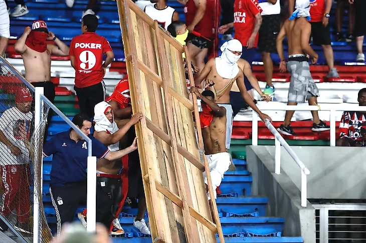 В первом матче дома «Атлетико Насьональ» победил 3:1, дальше нужно было удержать преимущество в гостях. До концовки держались нули, потом игру прервали: болельщики соперника пытались прорваться на поле. В опасности были журналисты и другие сотрудники стадиона.