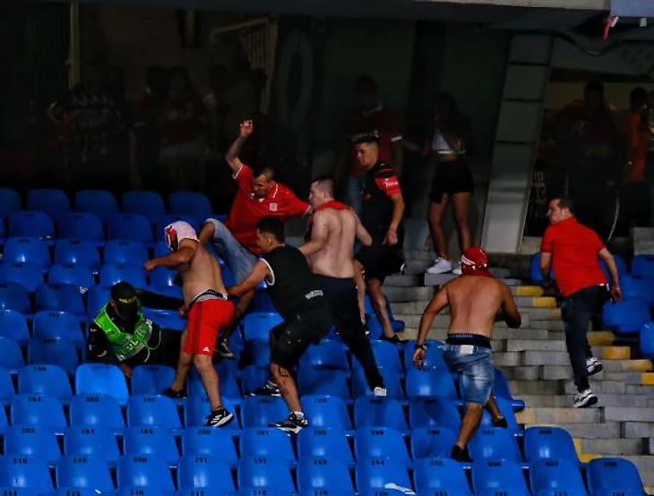 Полиция преградила хулиганам дорогу, но это подожгло еще больше. Игроки не пострадали – судья сразу же прекратил матч и увел всех в раздевалку. Остальные стали свидетелями побоища прямо в чаше стадиона.