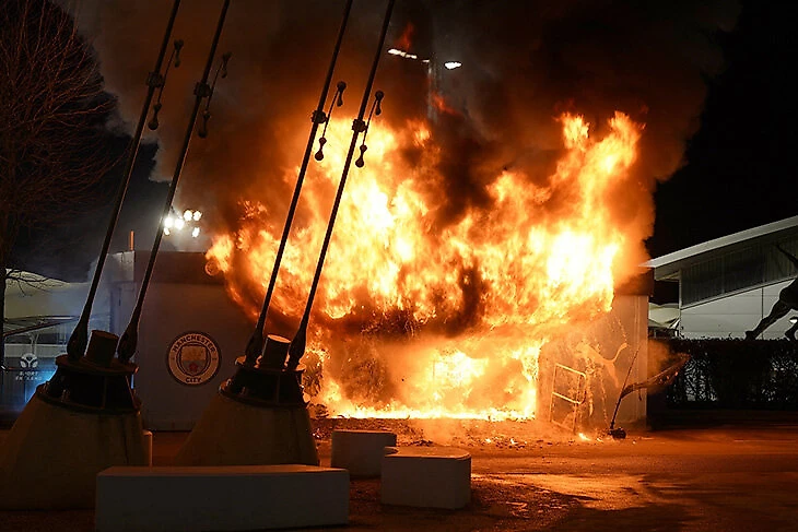 Фото дня: пожар у «Этихада». «Сити» отменил презентацию Хусанова, Мармуша и Рейса перед ЛЧ