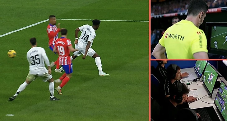Важно: Сото Градо попросил показать изображения с других ракурсов, но их не было. Арбитр несколько секунд помолчал, а потом согласился с рекомендациями коллег: «Давайте я назначу пенальти, но не буду давать предупреждение. Пенальти в пользу «Атлетико».
