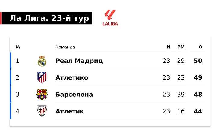 Новый разгром позволил «Барсе» вплотную приблизиться к «Атлетико» (теперь всего минус один) и «Реалу» (минус два).