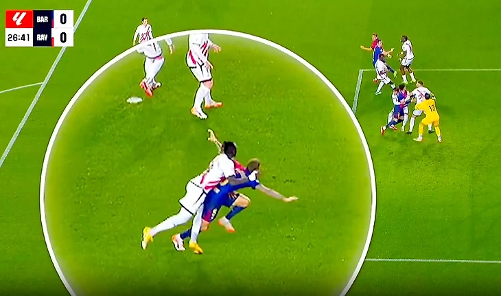 В середине первого тайма при подаче в штрафную «Райо» полузащитник гостей Пате Сисс вцепился в Иньиго Мартинеса: падение защитника «Барселоны» привело к назначению пенальти. Мяч до эпизода не долетел – вратарь сыграл на выходе и выбил его из штрафной.