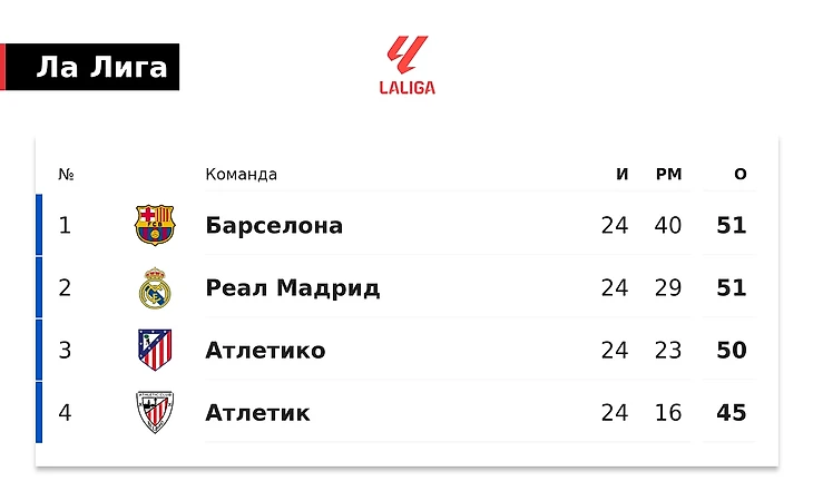 В 25-м туре «Барселона» сыграет в гостях с «Лас-Пальмасом», «Атлетико» – на выезде с «Валенсией», «Реал» примет «Жирону». «Атлетик» дома встретится с «Вальядолидом».