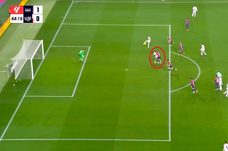 Оказалось, еще как влиял: блокировал Мартинеса, который бежал отбирать мяч у Де Фрутоса.