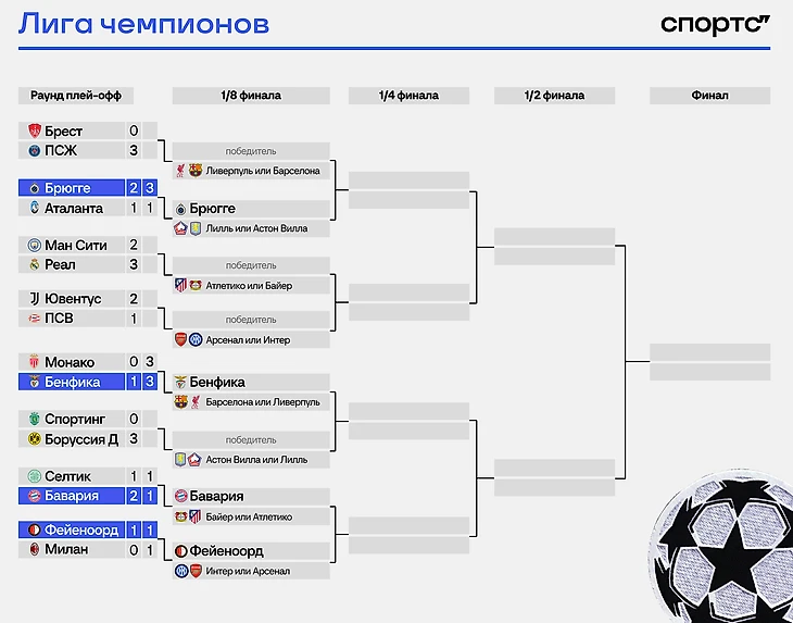 Кто на кого идет в ЛЧ? Соперники «Баварии», «Брюгге», «Бенфики» и «Фейеноорда» в 1/8 финала