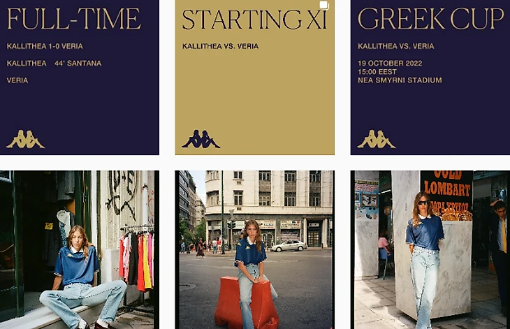 В греческий клуб даже перенесли стратегию ведения соцсетей, которая имитирует эстетику глянцевых модных журналов. Вот итальянская версия.