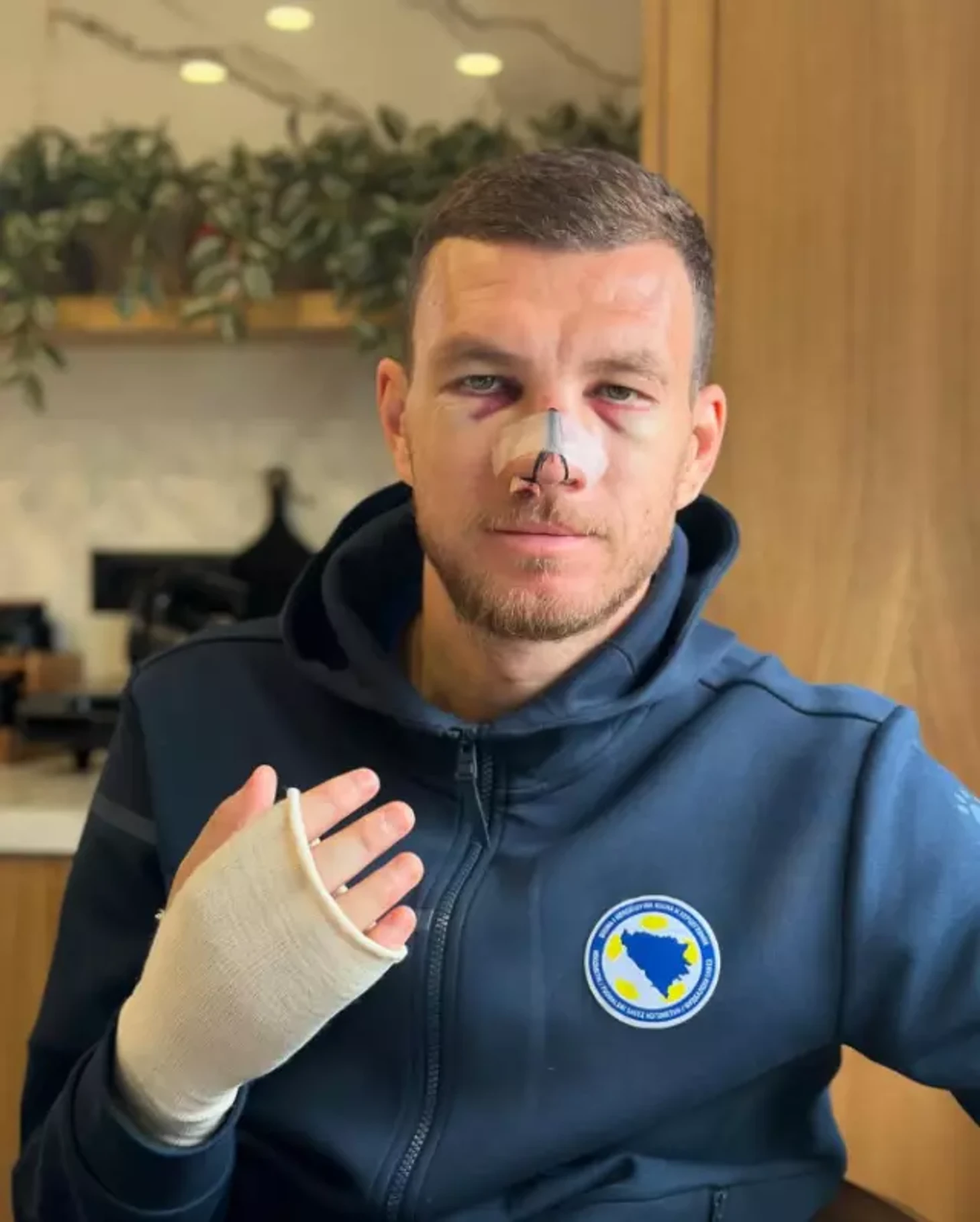 Несмотря на явный контакт и травму, судья не наказал Попеску даже желтой. Боснийцы в итоге удержали гостевую победу 1:0, но состояние Джеко вызывает серьезное беспокойство. В соцсетях нападающий поделился, как выглядит его сломанный нос и подписал: «Все или ничего».
