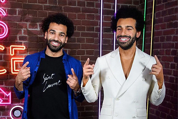 Осенью 2021-го двойником обзавелся Мохамед Салах: «Получить признание и быть увековеченным в виде восковой фигуры – это благословление. Не мог в это поверить, когда стоял рядом с «собой». Это как смотреть на отражение в зеркале».