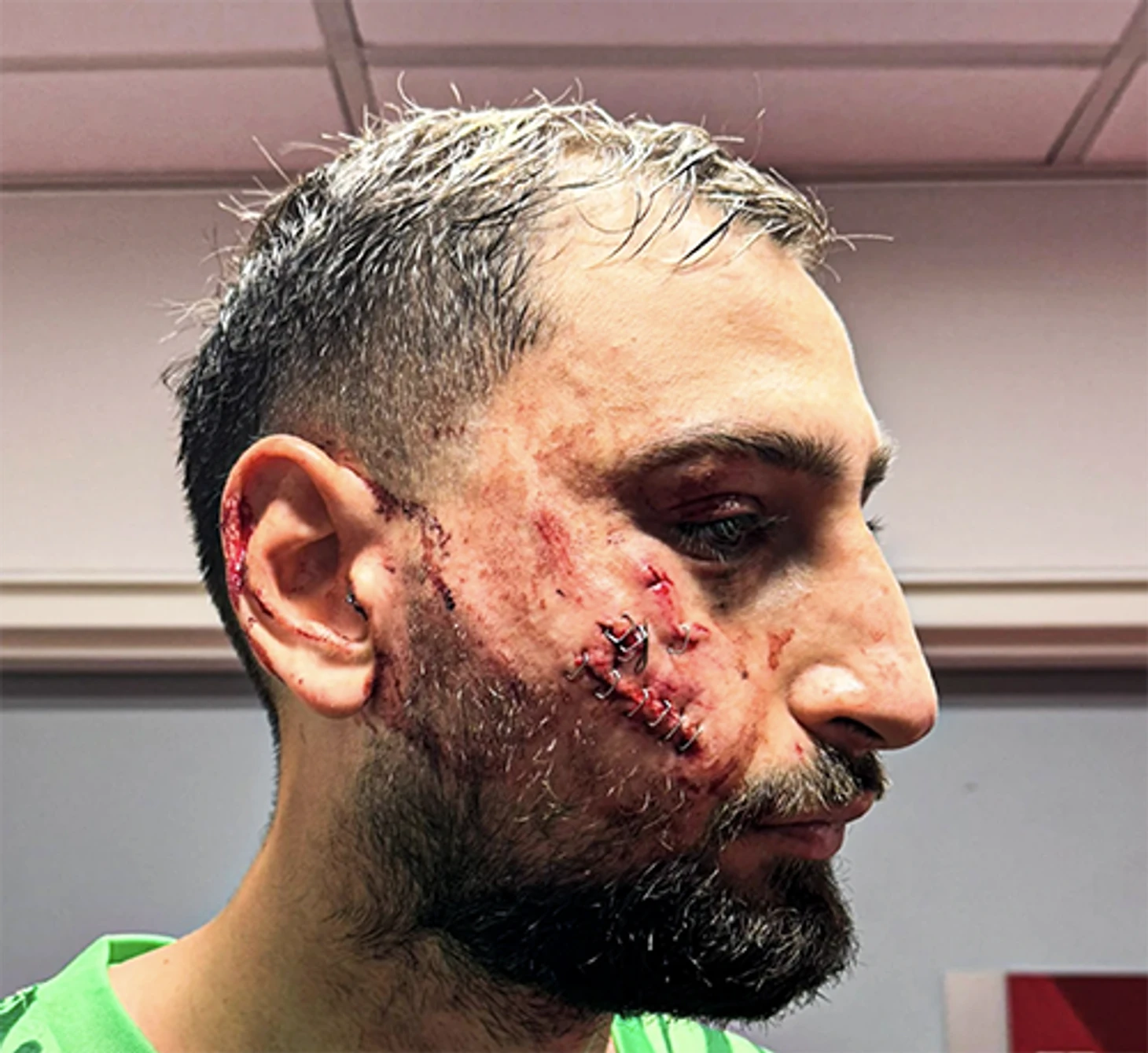 Джанлуиджи Доннарумма играет с заметным шрамом на лице после столкновения трехмесячной давности – в декабрьской игре с «Монако».