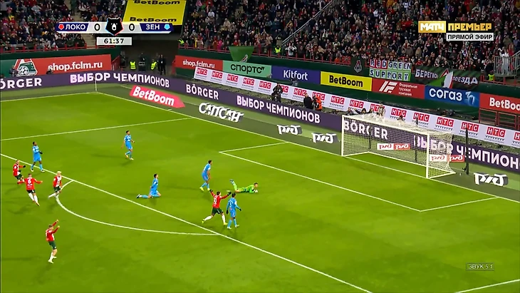 «Локомотив» на 62-й минуте матча с «Зенитом» получил шикарный подарок (сыграли 1:1, Соболев забил!). Хозяева закончили атаку с левого фланга ударом Сергея Пиняева, а Евгений Латышонок забрал мяч в руки.