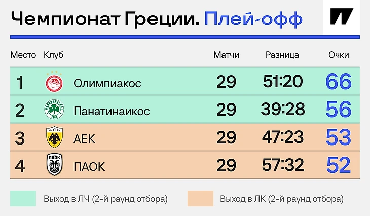 «Олимпиакос», кстати, только что стал чемпионом: 10 очков отрыва за три тура до конца. Не отыграть.