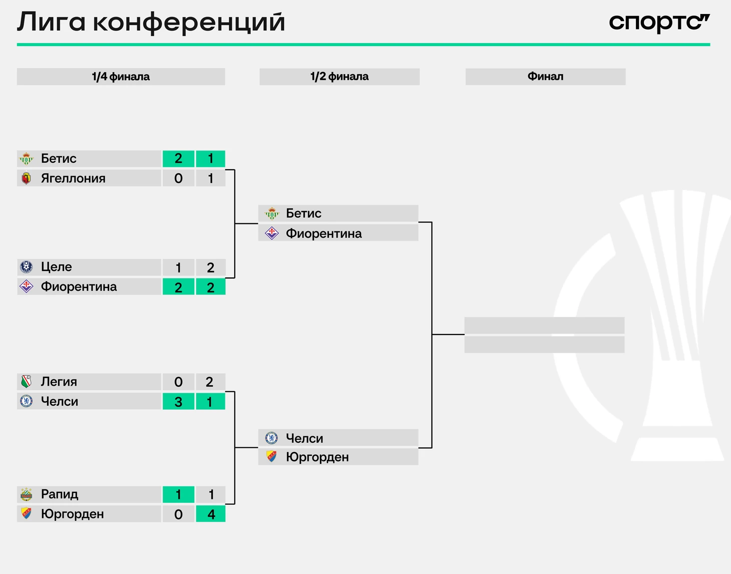 Это третий подряд полуфинал ЛК для «Фиорентины», в первых двух команда проходила «Брюгге» и «Базель». Теперь на этой стадии ждет еще один соперник на букву «Б» – «Бетис».