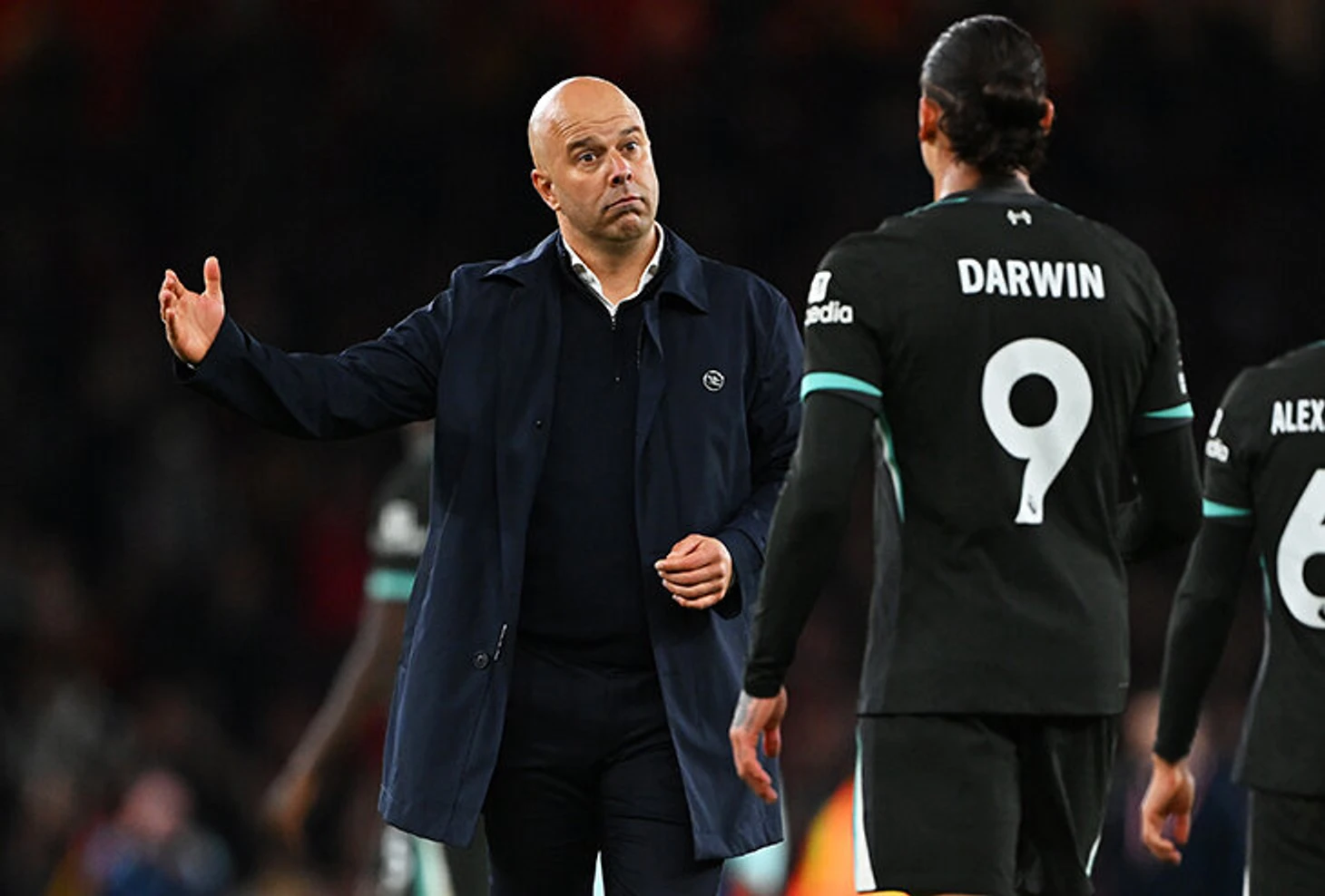 "Арне Слот разочаровался: «Дарвин старается, но я сказал ему: «Если ты упустишь еще один момент, я выйду забивать сам». Он в составе, но ему нужно быть точнее – каждый шанс на вес золота»."