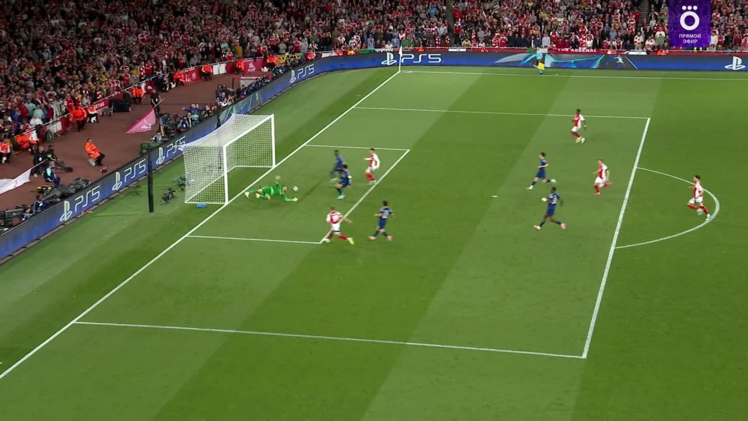 Гол. Арсенал хорошо накрыл ПСЖ в центре поля и поддавливал защитников. И тут первое же опускание Дембеле: принял мяч и пустил Хвичу по флангу против Тимбера без подстраховки и на открытом пространстве. Пока Тимбер пятился у своей штрафной, а Райс присматривает за Дембеле, в кадр на средней скорости врывается Сака. Райс оставляет Дембеле и идет на помощь к Тимберу, но не успевает. Удар в касание и гол. Винил бы Сака за нерасторопность.
