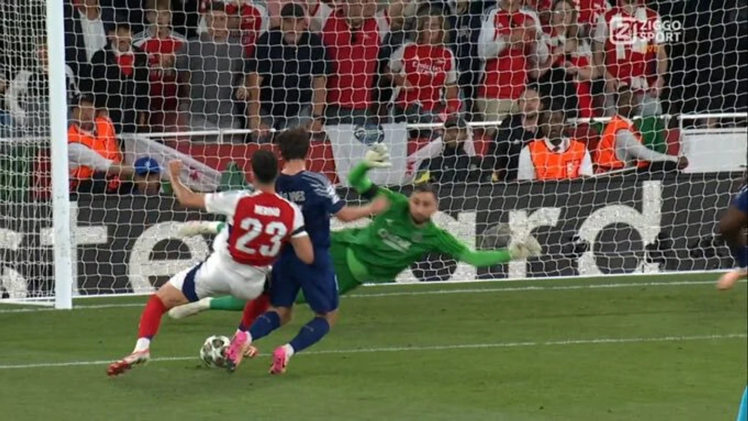 Ждал хороших стандартов от Арсенала. Подходы были, конечно, удары тоже, но несильные, во вратаря. Доннарумма еще два крутых сейва сделал после одинаковых ударов Троссарда кажется - по одному в первом и во втором таймах. Второй был круче: при первом ударе Доннарумма заваливался в один момент с ударом, а во втором сыграла именно реакция.