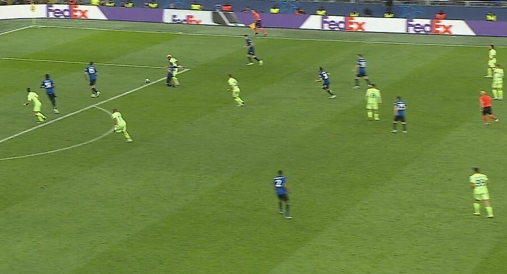 Неудивительно, что главный судья плохо видел, где нарушение: он никак не ожидал ошибки «Интера», был ближе к центру. С такой точки почти невозможно оценить эти сантиметры относительно линии штрафной.