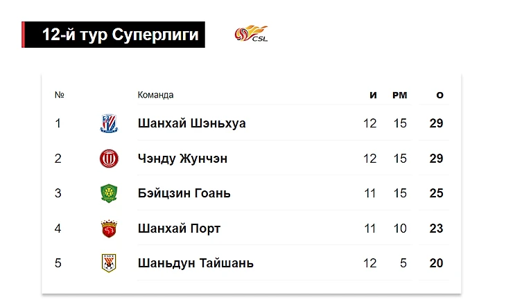 ● Меньше «Шанхая Шеньхуа» пропускает только одна команда, никто не забивает больше. У первых трех команд в таблице даже разница мячей одинаковая.
