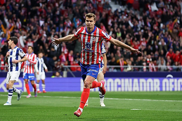 «Атлетико» мощно стартовал против «Сосьедада»: 3:0 к 11-й минуте, 4:0 к получасу. Все голы одного авторства.