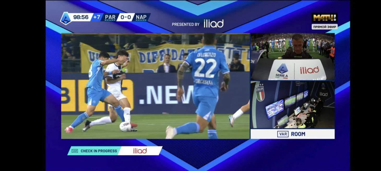 Концовка и здесь яркая. Давид Нерес уже в добавленное время убирал под себя в штрафной «Пармы» и наткнулся на ногу Матиаса Левика. Главный судья Даниэле Довери сначала дал пенальти, но ВАР через три минуты нашел фол в атаке – и судья отменил. Так и осталось 0:0, но «Наполи» все равно остался на первом месте.