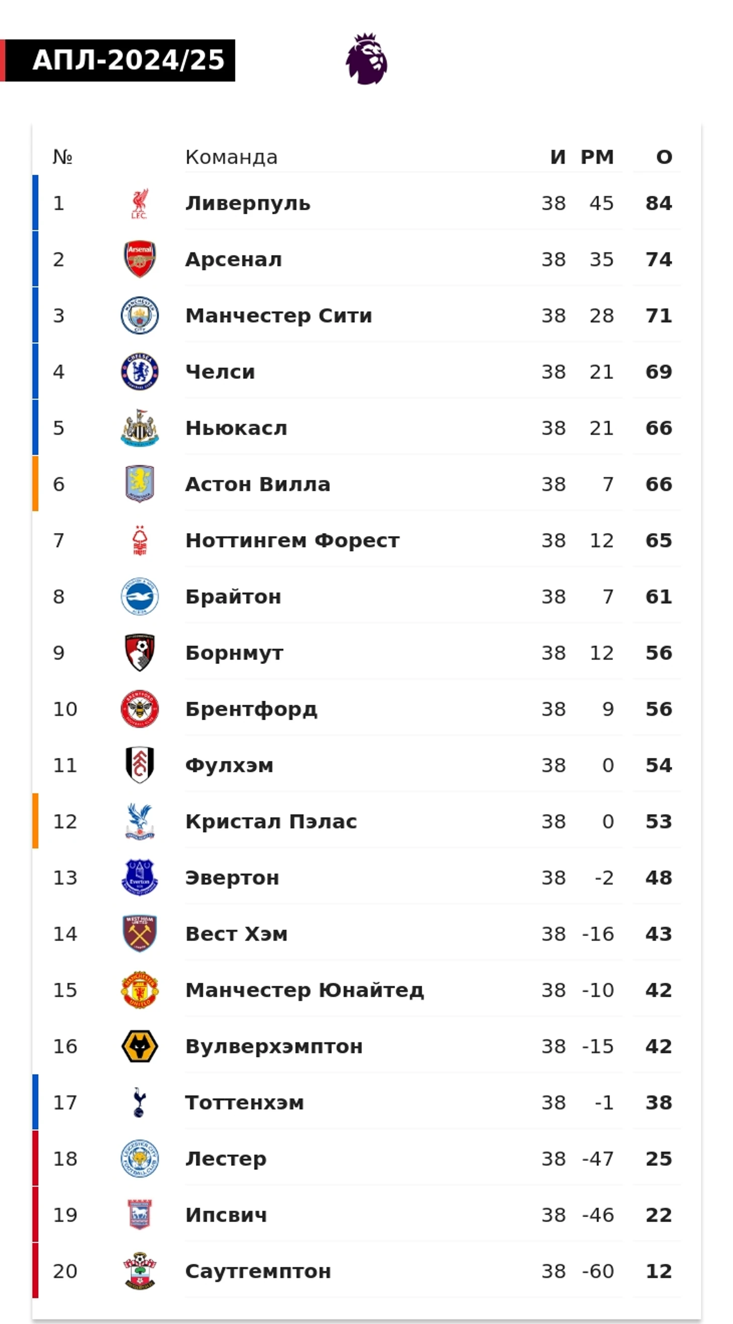 ❌ Вылетели: «Лестер», «Ипсвич», «Саутгемптон».