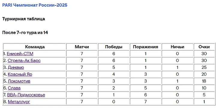 ● Этот сезон у «Енисея-СТМ» складывался чуть лучше – только одно поражение в семи матчах (от «Динамо») и вторая строчка в турнирной таблице.