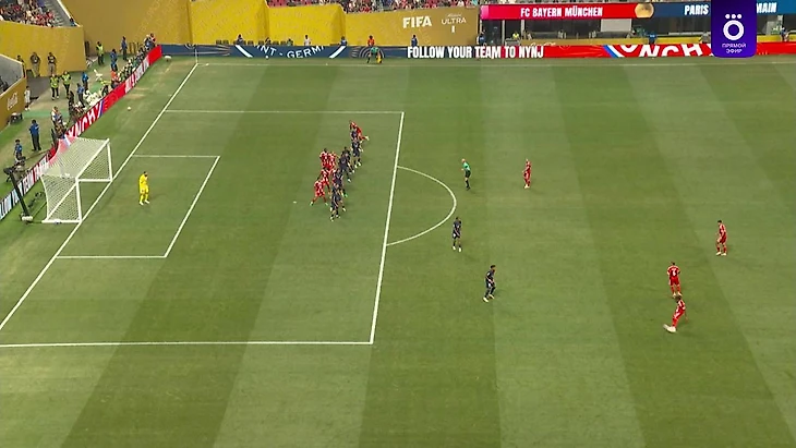 Ближе к перерыву «Бавария» ярко ответила. «Париж» даже пропустил после подачи Майкла Олисе со стандарта и точного удара Упамекано – правда, половина состава «Баварии» была в офсайде, гол сразу отменили. Парижане выстроились в линейку – и избежали проблем.
