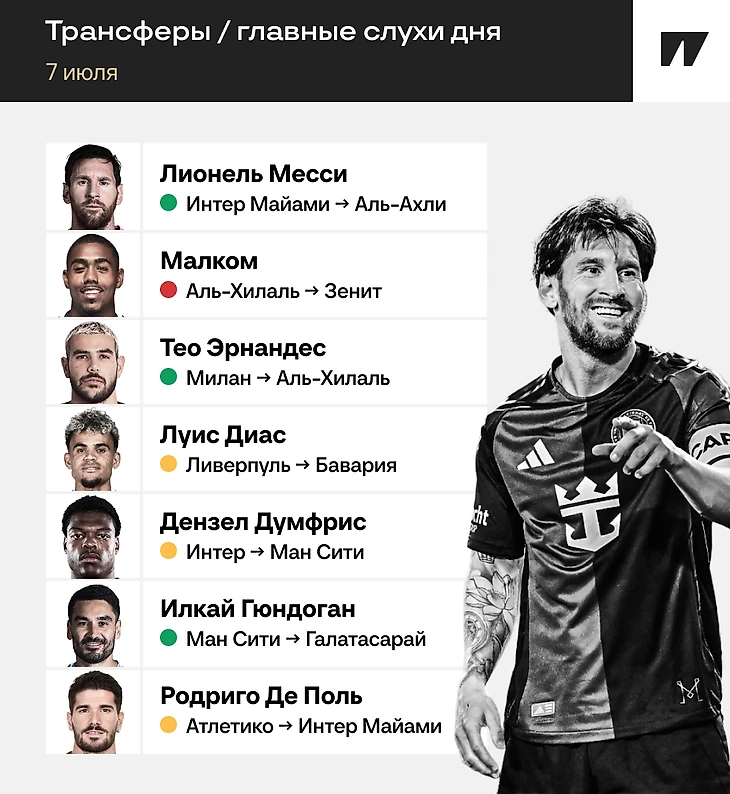 Месси – мечта СА, Малкома отправляют в «Зенит», а Тео выбрал деньги. Главные инсайды дня