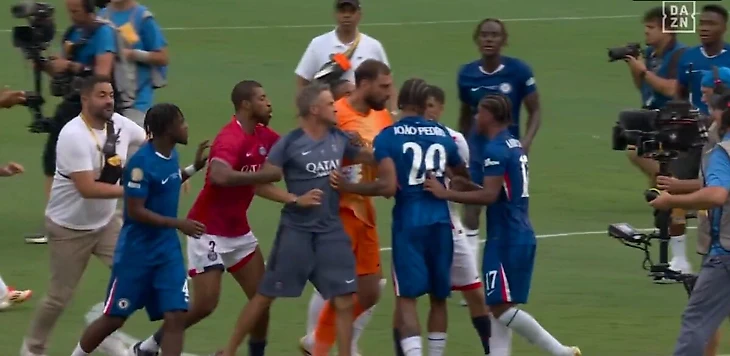 У «ПСЖ» сдали нервы после разгрома от «Челси» (0:3) в финале клубного чемпионата мира. Жоау Невеш дернул Марка Кукурелью за волосы и получил красную, а Луис Энрике потом зачем-то вцепился в Жоао Педро.