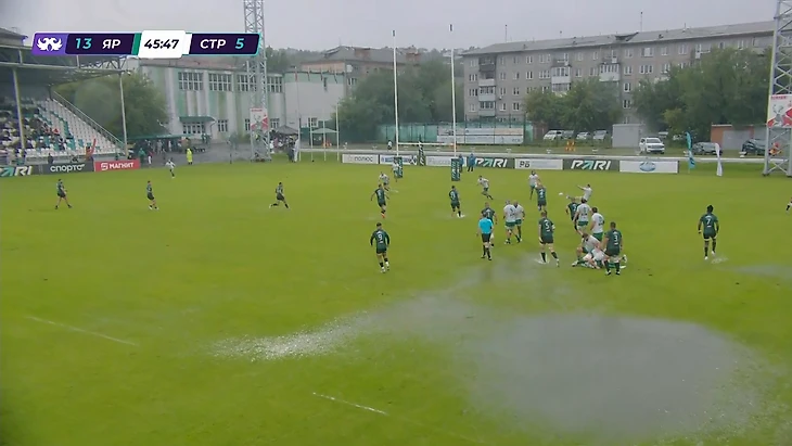 ● Красноярск не порадовал погодой – дождь лил с утра и превратил поле в болото. Не прекратился дождь и к началу матча – пришлось стартовать под ливнем и с большими лужами на газоне. Вода хлестала из под ног регбистов, игра трансформировалась в новый вид – водное регби.
